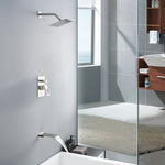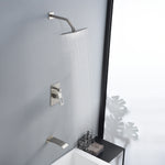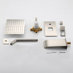 Alle für die Installation erforderlichen Hardwareteile sind im Lieferumfang enthalten. Das Duschpaket beinhaltet: 8-Zoll-Quadrat-Regenbrause, Duscharm, Duschmischer-Steuerventil, Wasserfall-Wannenauslauf.