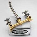 Im Lieferumfang sind ein Wasserhahnauslauf, ein Einbauventil, zwei Kreuzgriffe und eine Bedienungsanleitung enthalten. Bitte bewahren Sie die Bedienungsanleitung für den zukünftigen Bedarf sorgfältig auf.