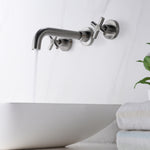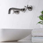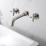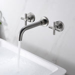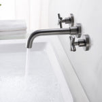 Moderner Badezimmer-Wasserhahn zur Wandmontage in gebürstetem Nickel-Finish, beständig gegen Korrosion und Anlaufen, verleiht den meisten modernen Badezimmern einen eleganten, sauberen Look.