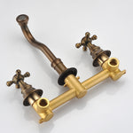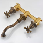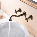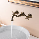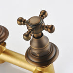 Der Wandmontage-Wasserhahn Sumerain aus antikem Messing zeichnet sich durch traditionelle Details und Designs aus und bietet gleichzeitig eine hervorragende Leistung. Dieser Doppelgriff-Waschbeckenhahn verfügt über Kreuzgriffe und ermöglicht eine bequeme Steuerung der Wassermenge. Dieser aus hochwertigem Messing gefertigte Wandhahn bietet Langlebigkeit und langlebige Qualität. Ausgestattet mit einer tropffreien Keramikscheibenkartusche. Erweitern Sie Ihr Zuhause mit klassischem Stil und beleben Sie die verführerischen Details und Designs des frühen 20. Jahrhunderts.