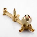Rohbauventil mit massiver Messingkonstruktion, beständig gegen Korrosion und Risse, gilt als das beste und langlebigste Material für den Einsatz in Sanitäranwendungen. Standardmäßige US-amerikanische Sanitäranschlüsse zur Einsparung von Arbeitsstunden bei der Installation.