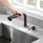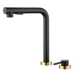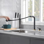 Der um 360° schwenkbare Küchenhahn passt perfekt zu allen Spülbecken. Der Wasserhahnauslauf lässt sich flexibel in jeden Winkel drehen und reicht über die Spüle hinaus, um andere Küchenaufgaben zu erledigen. Black & Gold-Finish sorgt für langanhaltenden Glanz und ist besonders langlebig und kratzfest.