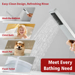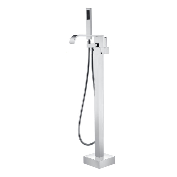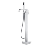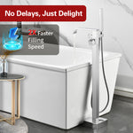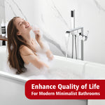 • 4.Flexible & Versatile Use: This modern freestanding bathtub faucet comes with a handheld shower that makes daily cleaning easier — perfect for rinsing the tub, bathing kids, or quick bathroom clean-ups. The single-handle design allows for easy control of water flow and temperature.