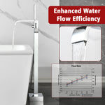 • 2. Relaxing Waterfall Experience: Designed with a 360-degree swivel spout, this floor mount bathtub faucet delivers a smooth, natural waterfall stream that fills your tub effortlessly — bringing a tranquil, spa-inspired bathing experience for you.