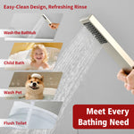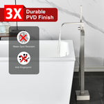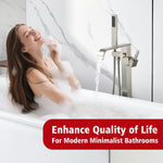 • 4.Flexible & Versatile Use: This modern freestanding bathtub faucet comes with a handheld shower that makes daily cleaning easier — perfect for rinsing the tub, bathing kids, or quick bathroom clean-ups. The single-handle design allows for easy control of water flow and temperature.