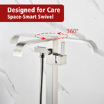 • 2. Relaxing Waterfall Experience: Designed with a 360-degree swivel spout, this floor mount bathtub faucet delivers a smooth, natural waterfall stream that fills your tub effortlessly — bringing a tranquil, spa-inspired bathing experience for you.