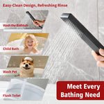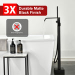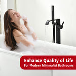 • 4.Flexible & Versatile Use: This modern freestanding bathtub faucet comes with a handheld shower that makes daily cleaning easier — perfect for rinsing the tub, bathing kids, or quick bathroom clean-ups. The single-handle design allows for easy control of water flow and temperature.