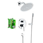 Alle für die Installation erforderlichen Hardwareteile sind im Lieferumfang enthalten. Das Duschset beinhaltet: Duschventil, Rosette, Griff, Duschkopf, Duscharm, Winkelstück, Schlauch, Handbrause.