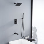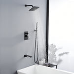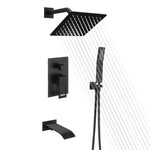 Alle für die Installation erforderlichen Hardwareteile sind im Lieferumfang enthalten. Das Duschpaket beinhaltet: 8-Zoll-Quadrat-Regenbrause, Handbrause, Duscharm, 59-Zoll-Brauseschlauch, Brausebogen mit Halterung, Duschmischer-Steuerventil, Wasserfall-Wannenauslauf.