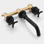 Der moderne Badezimmer-Wasserhahn zur Wandmontage in mattschwarzer Oberfläche ist korrosions- und anlaufgeschützt und verleiht den meisten modernen Badezimmern einen eleganten, sauberen Look.