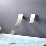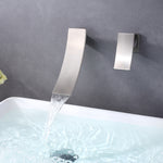 Die Oberfläche aus gebürstetem Nickel ist korrosions- und anlaufgeschützt. Dieser wandmontierte Badezimmerhahn ist speziell modern gestaltet und verfügt über einen dramatischen Wasserfallauslauf.