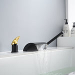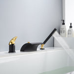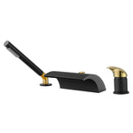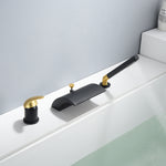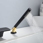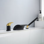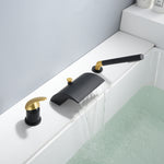 Hochwertige römische Wannenarmaturen mit Sumerain-Wasserfall verleihen dem Badezimmer einen modernen, eleganten, hochwertigen und breiten Auslauf, sodass der Wasserfall High-Tech aussieht. Ein hoher Durchfluss kann Ihre Badewanne in wenigen Minuten füllen. Ziehen Sie einfach den Knopf an der Rückseite des Auslaufs nach oben und unten, um den Wasserfluss auf Handbrause oder Auslauf umzustellen. Dieser an der Wanne montierte Wasserhahn verfügt über eine Handbrause, um Ihre Bademöglichkeiten zu verbessern. Mit leicht zu reinigenden Silikondüsen können Sie Ablagerungen von hartem Wasser und Kalk einfach abwischen und so die Wartung problemlos durchführen. Ein ergonomischer Einhebelgriff ermöglicht die Kontrolle von Wasser und Temperatur für ein optimales Badeerlebnis. 3-Loch-Installation, auch perfekt zum Umbau und Austausch Ihres alten Wannenhahns.