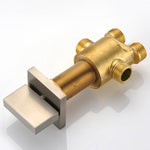 • 2. Die Messingkonstruktion des Wasserfall-Wannenhahnkörpers und der Griffe sorgt für Zuverlässigkeit, die mattschwarze Oberfläche ist korrosions- und kratzfest.