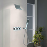 This shower faucet features a luxurious, high-volume waterfall showerhead and 3 easy-to-control knobs. This premium shower system set delivers a spa-like, customizable bathing experience in your own home. The brass and stainless steel construction guarantees durability, and the stylish design makes it a functional and long-lasting addition to your bathroom.