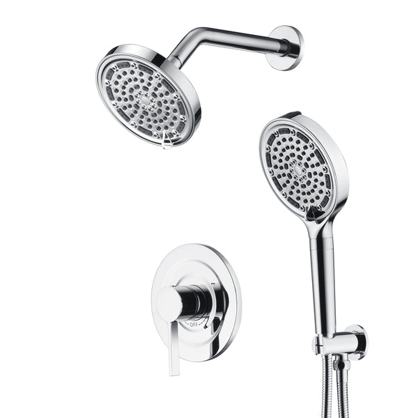 • 2. 2-in-1 Control Valve for Hassle-Free Switching: Tired of juggling multiple valves? Our innovative 2-in-1 control valve in the shower faucet lets you swap between the handheld sprayer and overhead head with a simple turn.