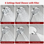 • 1. Handheld Sprayer with Built-in Filter + 6 Modes: Our rainfall shower system includes a handheld showerhead with a built-in filter that removes impurities for cleaner water. Enjoy six spray modes for a customizable shower experience tailored to your needs.