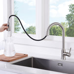 • 1.Pull-Down Kitchen Faucet: This ICC-ES PMG certified pull-down kitchen faucet features a 360-degree swivel design, allowing users to direct water flow precisely where needed, covering every corner for versatile kitchen cleaning tasks.
