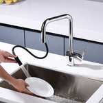 • 1. Dual Function Kitchen Sink Faucet: This kitchen faucet features a flexible pull-out sprayer for effortless rinsing and cleaning. Switching between a gentle stream for precise filling and a powerful spray for tough cleaning, it makes cleaning tasks easier.