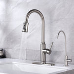• Easy Installation with Included Deck Plate This kitchen sink faucet comes with all the necessary accessories for a hassle-free installation.   Whether you have a single-hole or three-hole sink setup, the included deck plate facilitates a seamless three-hole installation.   No need to hire a plumber, saving you time and money.