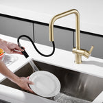 • 1. Dual Function Kitchen Sink Faucet: This kitchen faucet features a flexible pull-out sprayer for effortless rinsing and cleaning. Switching between a gentle stream for precise filling and a powerful spray for tough cleaning, it makes cleaning tasks easier.