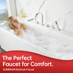 • 1. Spa-like Waterfall Experience: This 5 holes Roman tub faucet features a wide, cascading waterfall spout that delivers a smooth, steady stream of water, quickly filling your tub for a truly luxurious and relaxing bathing experience.