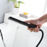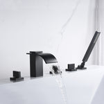 • Die Messingkonstruktion des Gehäuses und der Griffe des Wasserfall-Wannenhahns sorgt für Zuverlässigkeit, die mattschwarze Oberfläche ist korrosions- und kratzfest.
