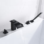 Römischer Wannenhahn zur Deckmontage mit minimalistischem, stromlinienförmigem Design. Überlegenes mattschwarzes Finishing-Verfahren widersteht Abrieb und Korrosion.