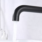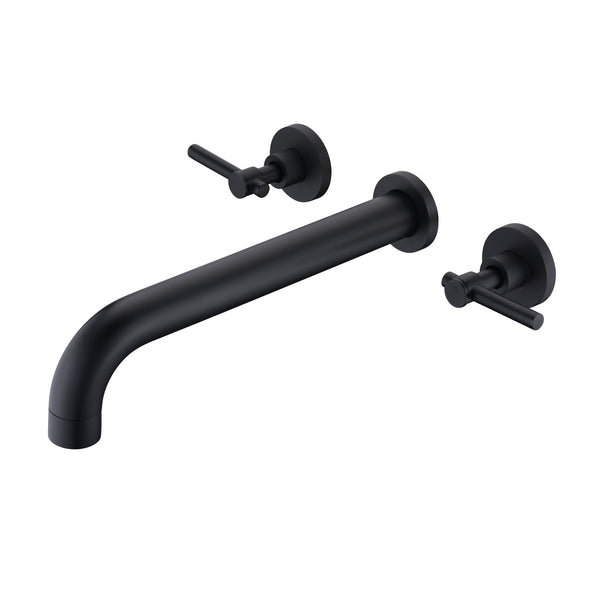 Wandmontierter Wannenhahn mit minimalistischem, stromlinienförmigem Design. Überlegenes mattschwarzes Finishing-Verfahren widersteht Abrieb und Korrosion.