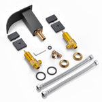 2 Griffe für mühelose Durchfluss- und Temperaturkontrolle. Das Paket beinhaltet Wasserfall-Wannenauslauf, Ventile, Griffe, Schläuche und Armaturen.