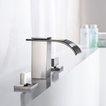 Dieses Design aus schlanken und stilvollen Wasserhähnen verleiht Ihrer Badewanne ein modernes Aussehen. Diese 3-Loch-Wannenarmatur kann direkt auf dem Deck Ihrer Badewanne installiert werden. Der Wasserfallauslauf sorgt für einen klaren und gleichmäßigen laminaren Strahl und verleiht Ihrem Badezimmer ein einzigartiges Aussehen. Eine hohe Durchflussrate kann Ihre Wanne schnell füllen. Es verfügt über zwei Griffe, die eine problemlose Bedienung ermöglichen. Die Eleganz und der Stil dieser Wannenarmatur aus gebürstetem Nickel werden durch ihre bewährte Leistung und Zuverlässigkeit ergänzt.
