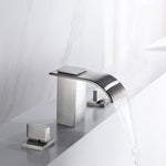 2 Griffe für mühelose Durchfluss- und Temperaturkontrolle. Das Paket beinhaltet Wasserfall-Wannenauslauf, Ventile, Griffe, Schläuche und Armaturen.