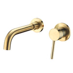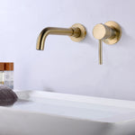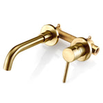 • Wandmontierte Badarmaturen mit gebürstetem Goldfinish sind korrosions- und anlaufgeschützt und übertreffen die branchenüblichen Haltbarkeitsstandards