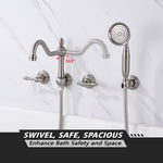 • 2. 360° Rotatable Spout: Enjoy maximum versatility with this wall mount bathtub faucet featuring a spout that rotates 360°, allowing you to adjust water flow to any angle. The top of the spout includes a diverter lift button for easy switching between the faucet and sprayer.