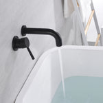 Badewannenarmatur zur Wandmontage mit minimalistischem, stromlinienförmigem Design. Das hochwertige mattschwarze Finishing-Verfahren schützt vor Abrieb und Korrosion.