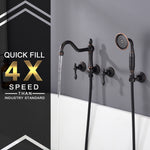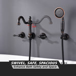 • 2. 360° Rotatable Spout: Enjoy maximum versatility with this wall mount bathtub faucet featuring a spout that rotates 360°, allowing you to adjust water flow to any angle. The top of the spout includes a diverter lift button for easy switching between the faucet and sprayer.