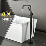 • 4.High Flow Rate Performance:This free standing tub faucet offers a powerful flow rate of 9.48 GPM (35.9 L/M) at 60 PSI, efficiently filling your bathtub in no time. It is certified by WATER SENSE, CEC, and DOE for water-saving features, allowing you to enjoy luxurious bathing while being environmentally conscious.