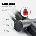 • 1. Durable Brass Construction:This freestanding tub faucet is crafted from solid brass for exceptional durability and meets ICC certification. The cartridge is tested for over 600,000 cycles, while the corrosion-resistant PVD finish enhances its longevity.