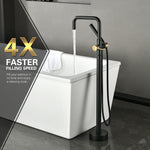 • 1. Durable Brass Construction:This freestanding tub faucet is crafted from solid brass for exceptional durability and meets ICC certification. The cartridge is tested for over 600,000 cycles, while the corrosion-resistant PVD finish enhances its longevity.