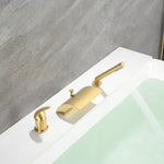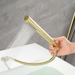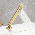 Hochwertige römische Wannenarmaturen mit Sumerain-Wasserfall verleihen dem Badezimmer einen modernen, eleganten, hochwertigen und breiten Auslauf, sodass der Wasserfall High-Tech aussieht. Ein hoher Durchfluss kann Ihre Badewanne in wenigen Minuten füllen. Ziehen Sie einfach den Knopf an der Rückseite des Auslaufs nach oben und unten, um den Wasserfluss auf Handbrause oder Auslauf umzustellen. Dieser an der Wanne montierte Wasserhahn verfügt über eine Handbrause, um Ihre Bademöglichkeiten zu verbessern. Mit leicht zu reinigenden Silikondüsen können Sie Ablagerungen von hartem Wasser und Kalk einfach abwischen und so die Wartung problemlos durchführen. Ein ergonomischer Einhebelgriff ermöglicht die Kontrolle von Wasser und Temperatur für ein optimales Badeerlebnis. 3-Loch-Installation, auch perfekt zum Umbau und Austausch Ihres alten Wannenhahns.