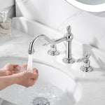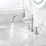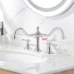 • 2. 360-Degree Swivel Spout: The 2 Handle basin faucet features a spout that rotates 360 degrees, allowing for versatile and efficient cleaning from multiple angles.