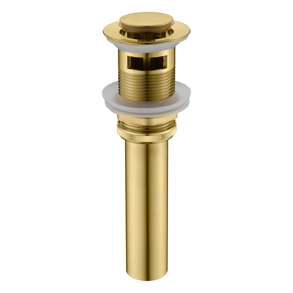With clean lines and sturdy construction, SUMERAIN bathroom pop up drain provides everyday efficiency with style. Constructed from brass, the pop-up drain is designed to work with most sinks with overflow. For easy installation, all required silicone gaskets are included. This brushed gold finish drain will match your bathroom faucet and create a beautiful modern look.