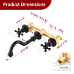 SUMERAIN Classic Wall Mount Vessel Sink Faucet, 3 Holes Cross Knobs Matte Black Lavatory Basin Faucet with Included in-Wall Valve
