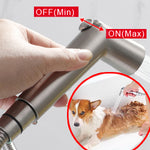 Dog shower sprayer with flow regulating button, easy to control flow pressure and flow rate with your fingertips, soft and gentle water will let your pets enjoys the bathe!