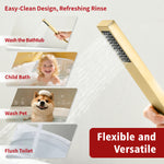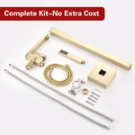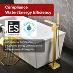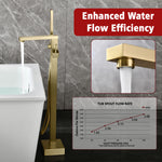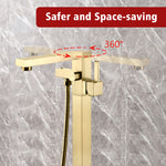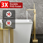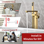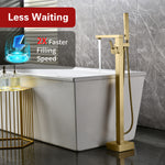 SUMERAIN Freestanding Bathtub Faucet with Hand Shower, Solid Brass Single Handle Floor Mount Tub Filler Brushed Gold Finish, High Flow