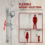 4. Customizable Hand Shower: This shower set includes a hand shower with a 90° adjustable angle and 3 water modes—rain, mist, and rain+mist—providing a customizable experience for the whole family. The slide bar allows for easy height adjustment, ensuring comfort for all users.