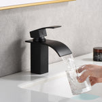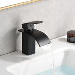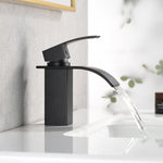 SUMERAIN Matte Black Bathroom Sink Faucet, Lead-Free 304 Stainless Steel Single Hole Single Lever Vanity Faucet with Waterfall Spout