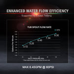 • 4. Efficient Bathtub Spout: With a flow rate of 6.45 GPM at 60 PSI, the shower tub faucet with powerful spout fills your bathtub 3 times faster speed, saving you valuable time while providing a strong water stream.