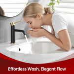 This bathroom sink faucet combines durability, aesthetics, and simplicity to meet the evolving demands of modern bathrooms. It features a sleek design that adds a touch of elegance to any decor.