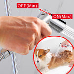 Transform pet grooming with this versatile shower sprayer featuring a solid brass diverter valve instead of plastic valve that ensures durability. The sprayer includes a flow regulating button, easy to control flow pressure and flow rate with your fingertips, making bath time comfortable for your pets. Its ergonomic design and 8-foot hose provide excellent maneuverability during grooming sessions.
