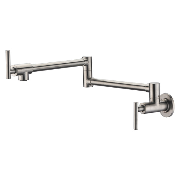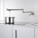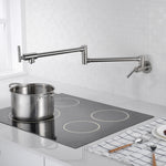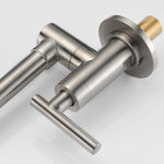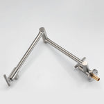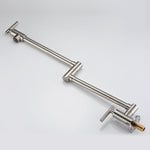 Füllen Sie die größten Töpfe und Pfannen direkt auf dem Herd mit dem SUMERAIN Brass Restoration Kitchen Pot Filler. Dieses Produkt bietet ein stromlinienförmiges Design und unvergleichlichen Komfort und Leistung. Mit den beiden Absperrhebeln des Wasserhahns können Sie das Wasser mit einer einfachen Vierteldrehung des Griffs entweder an der Wand oder am Auslauf ein- oder ausschalten und so den Wasserfluss an der Verbrauchsstelle steuern. Die beiden Schwenkgelenke lassen sich ausfahren, um den Zugang zu Wasser direkt über Ihrem Kochfeld zu ermöglichen, und lassen sich bei Nichtgebrauch einfach zusammenklappen.